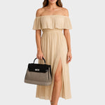 Basilia Elena - Bolsa de lona en piel de vaca