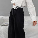 Abril - Pantalón Asimétrico con Cintura de Contraste
