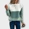 Descubre el estilo único de Danna – un suéter con patchwork de tres piezas que combina elegancia y comodidad.